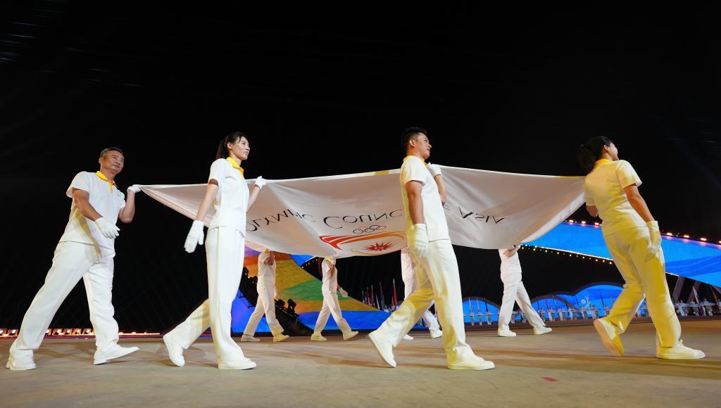4月22日,亚奥理事会会旗在开幕式上入场。新华社记者 陈思汗 摄