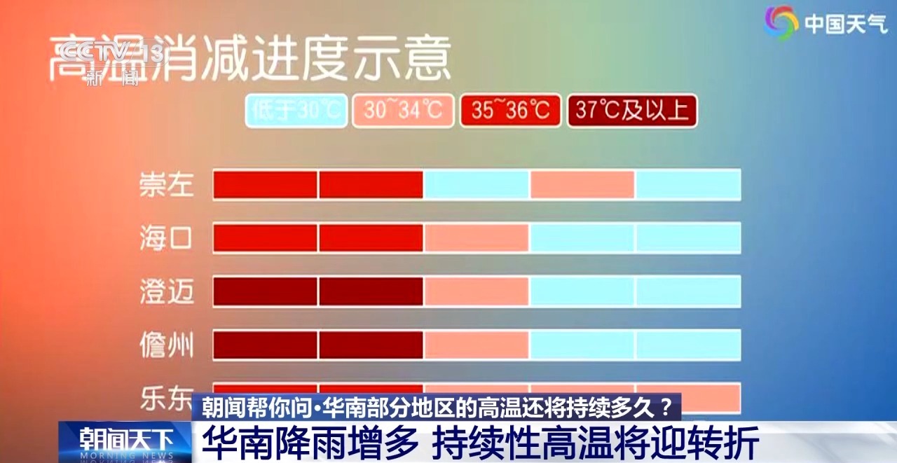 不过接下来几天,南海上空的副热带高压环流将会逐渐减弱并南撤,华南地区降雨增多,海南和广西西部的暑热也会逐渐消减。